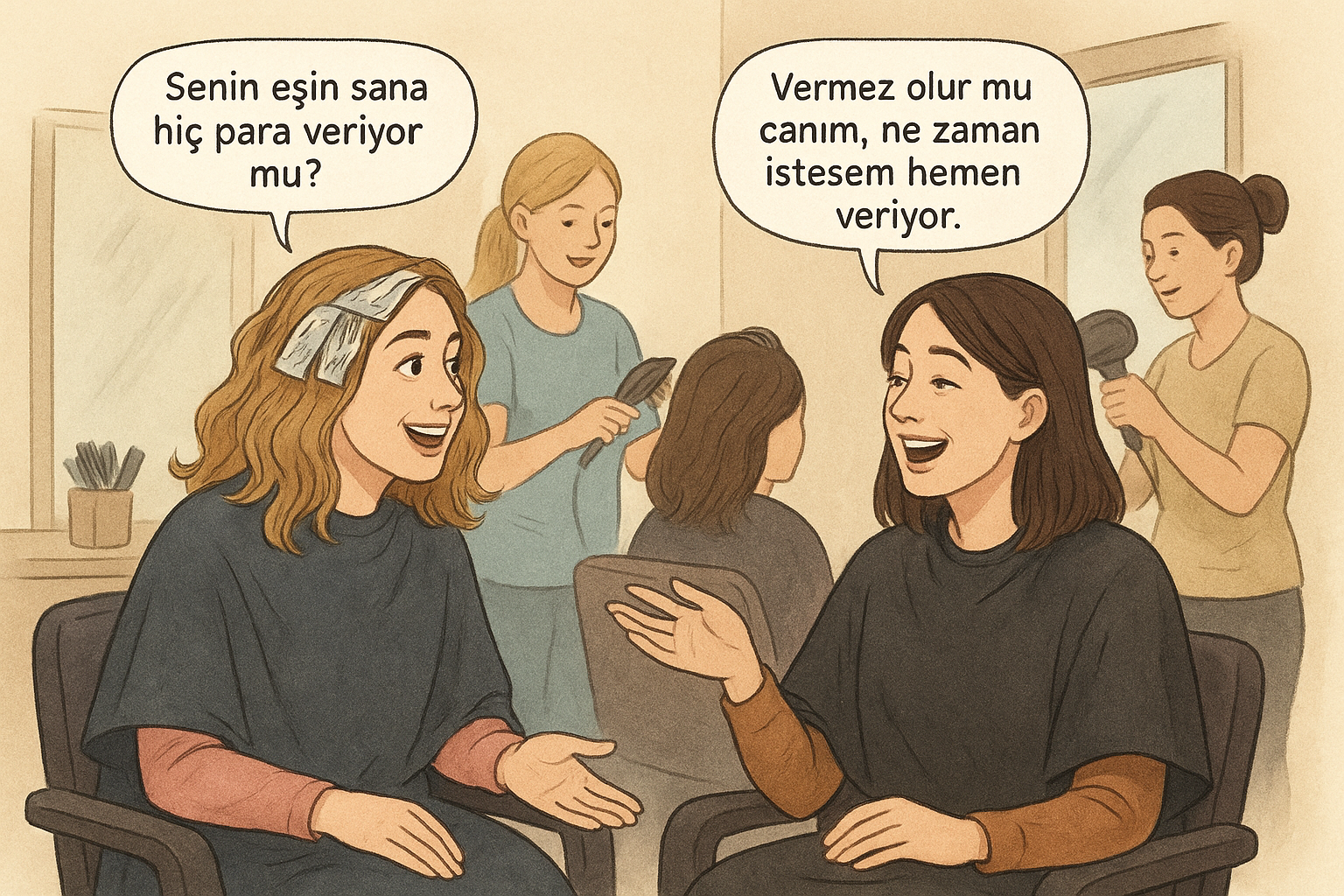 İki kadın kuaförde saçlarını yaptırırken sohbete dalmışlar. Konu tabii ki kocalara gelmiş. — Senin eşin sana hiç para veriyor mu? Vermez olur mu canım, ne zaman istesem hemen veriyor. Aaaa! Nasıl alıyorsun, bana da söyle, benim eşim hiç vermiyor… “Annemin evine dönerim, bir daha gelmem.” diyorum. – Eee?? O da hemen çıkarıp yol parası veriyor..! […]